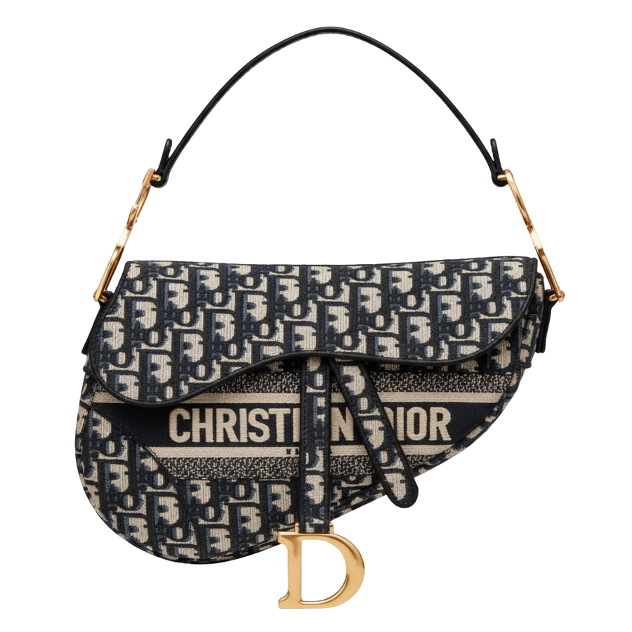 تتميز بغطاء قلاب (Saddle flap) على شكل سرج، ومقبض علوي، وشعار CD معدني عتيق ذهبي اللون على جانبي المقبض.
