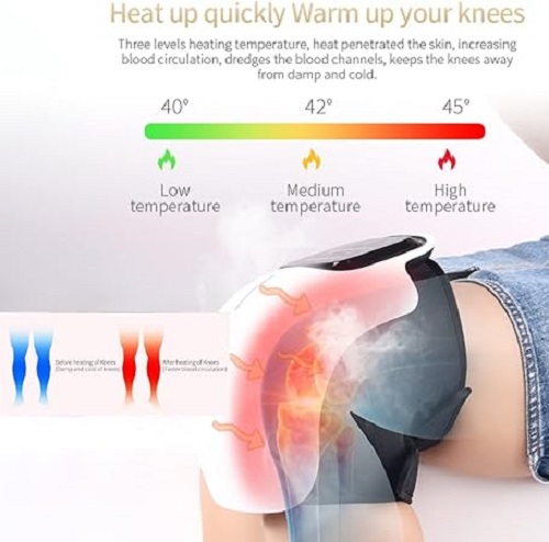 جهاز تدليك محمول للركبة: يحتوي جهاز تدليك تسخين الركبة على 3 تعديلات لدرجة الحرارة، درجة منخفضة 40 درجة